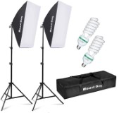 MountDog Photography Continuous Softbox Lighting Kit is perfect for portrait shooting and filming. The relief stone line on the silver mirror is reflected to the light diffuser while continuing to soften the light. Suitable for diffusing light from any flash / flash lightand constant light. Ultimately soften lighting,remove the shadow, to show the perfect shooting. Photography lighting comes with a standard E27 socket, 4 x 135W CFL bulbs supplied are equal to the 1350W incandescent bulb in total to save energy up to 80%. The softness of the shooting makes the shooting object more beautiful and moving. More importantly, it will not irritate your eyes. Softbox lighting angle can be 210°adjusted to achieve perfect lighting effect at different angles, offer more choice to customer choose. With an independent lock button, you can set the desired angle in a few seconds so that you can use the softbox as a main light or additional light at will.